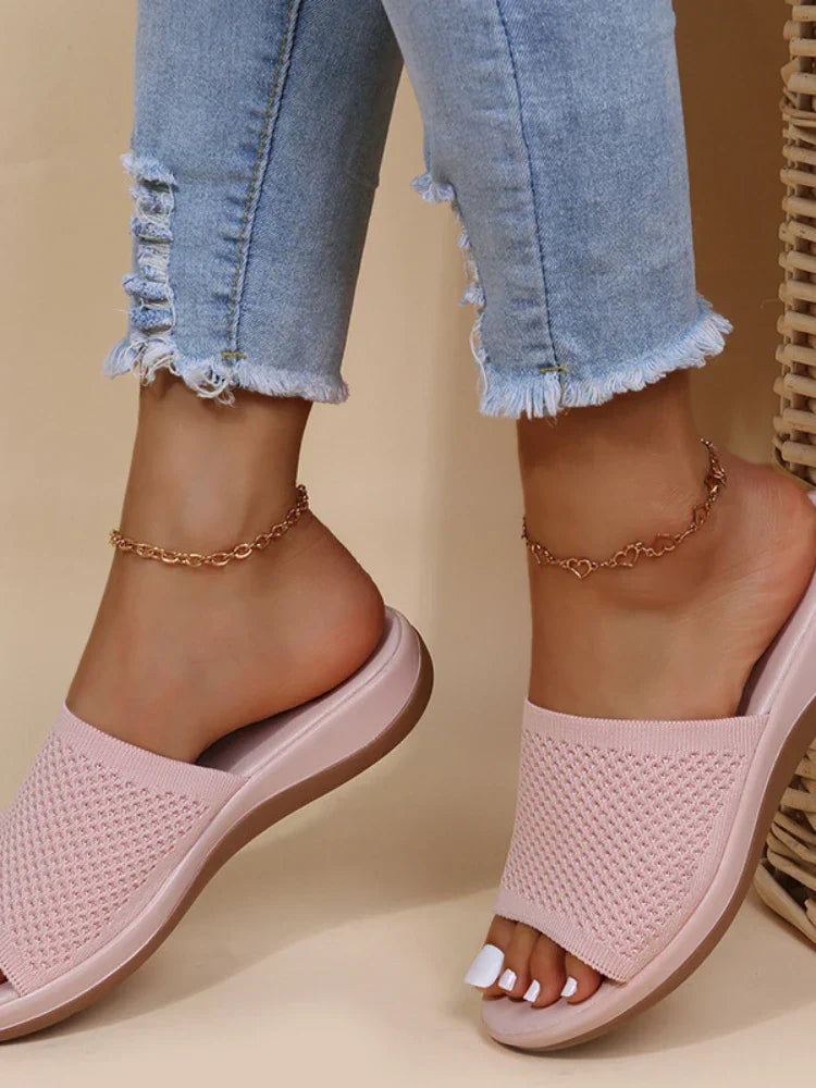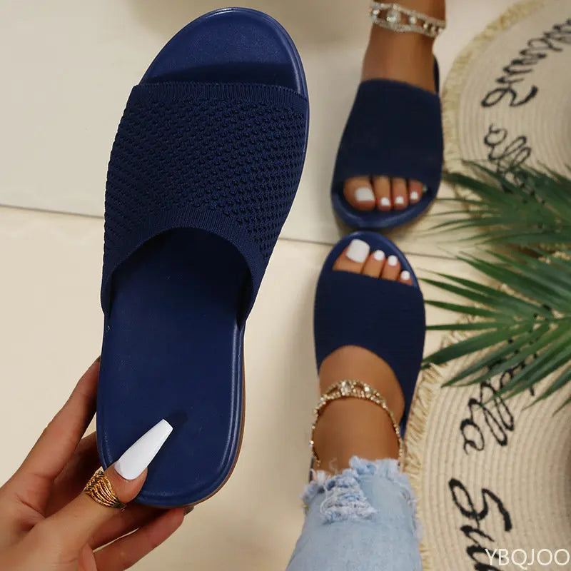 סנדלי נשים שטוחות עם סוליית TPR וגימור PVC. עם סוליה פנימית EVA לנוחות מרבית. סגירת דבק ונוחות מרבית לפעילות יומיומית בקיץ. עיצוב פשוט ואופנתי, אידיאליים להליכה קלה ונעימה.