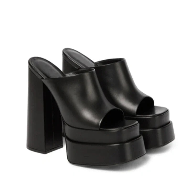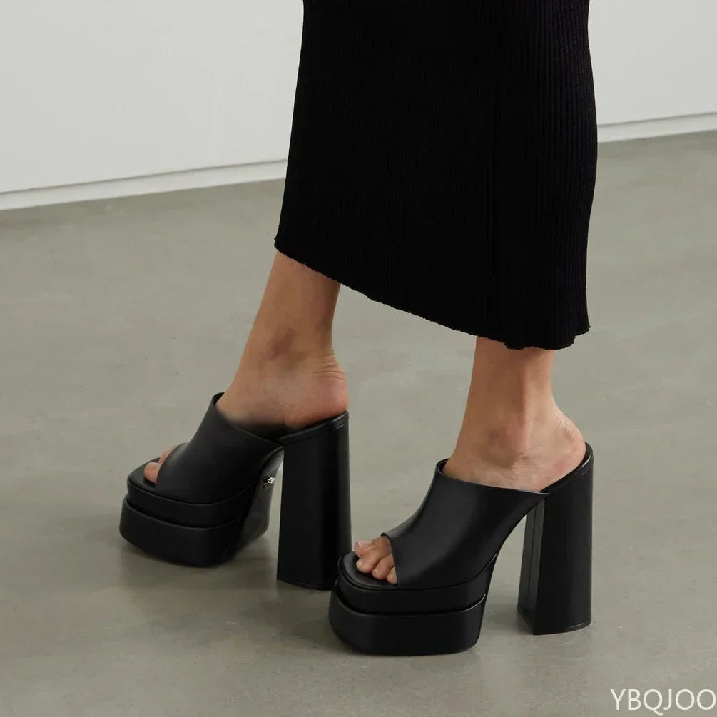 סנדלים לנשים בסגנון קלאסי, מעוצבים עם עקב מרובע בגובה של 5-8 ס"מ וכוללים פלטפורמה בגובה 3-5 ס"מ, מה שמעניק נוחות ויציבות במהלך הליכה.