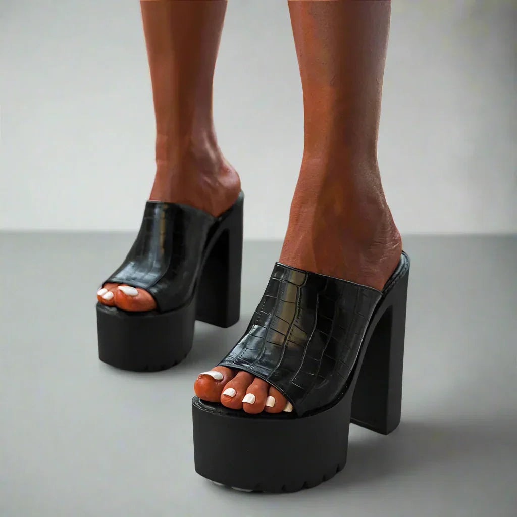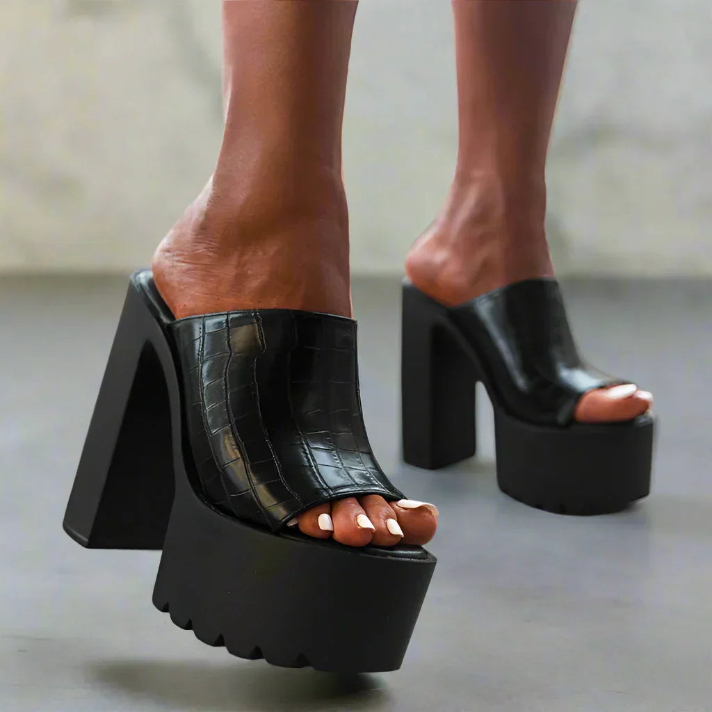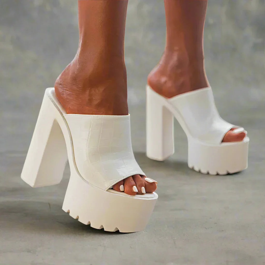 סנדלי פלטפורמה אופנתיים לנשים, עשויים מעור אמיתי ואיכותי עם סוליית גומי איכותית. הסנדלים מעוצבים עם עקב מרובע בגובה 14 ס"מ ופלטפורמה בגובה 3-5 ס"מ, מה שמבטיח נוחות ותמיכה במהלך הליכה. עם עיצוב מינימליסטי, קשת אחורית לסגירה קלה