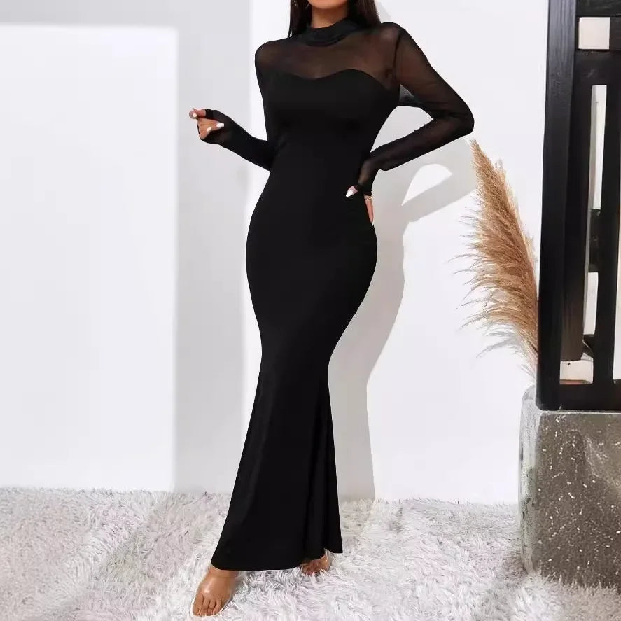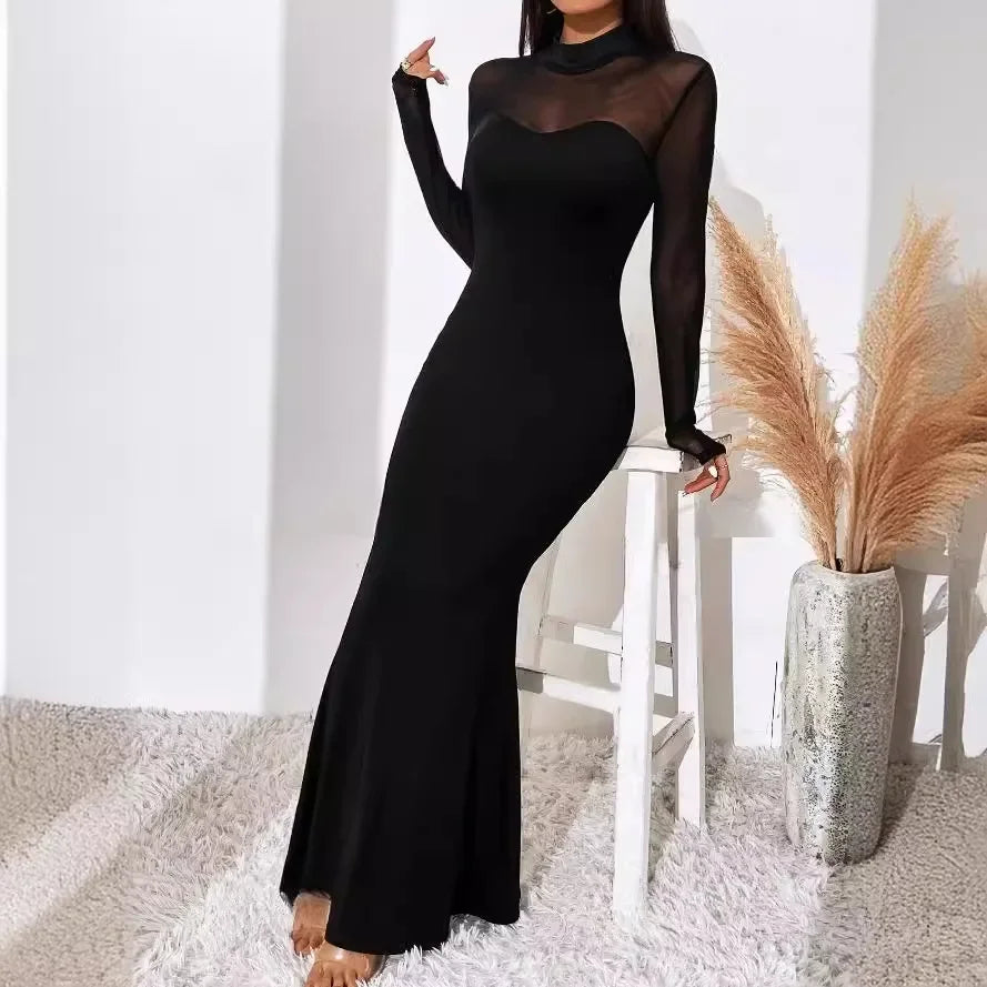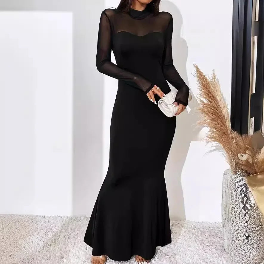 שמלה מהממת ביופיה, עם רשת שקופה למעלה מושלמת לכל אירוע נוצץ
